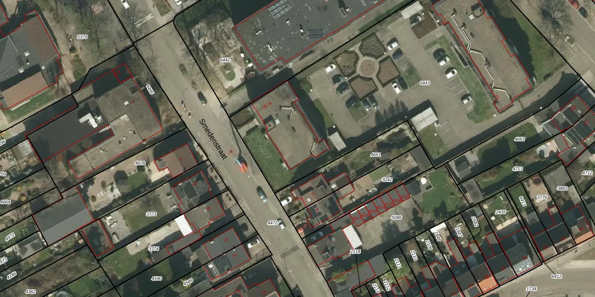 Het perceel waarop Smedenstraat 1-K staat heeft een oppervlakte van 4448 m². Dit is een zeer groot perceel. De perceeloppervlakte wordt geregistreerd door het Kadaster. Gedetailleerde informatie over de maten van dit perceel kunt u vinden in het rapport Kadastrale kaart met maatvoering van Smedenstraat 1-K.