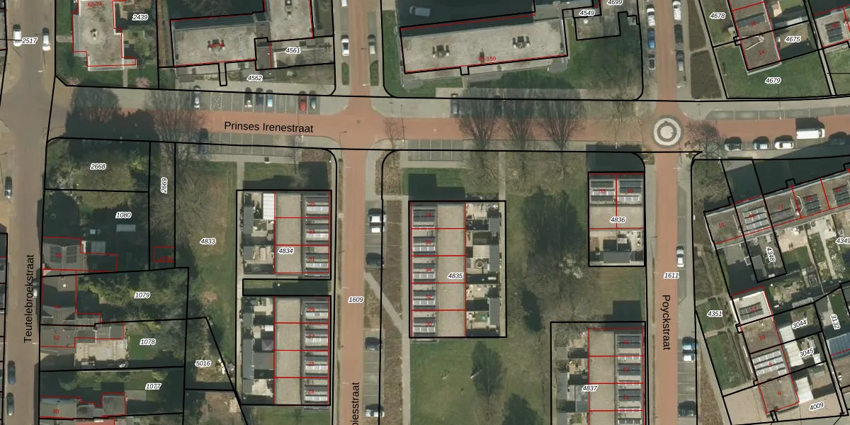 Het perceel waarop Spiesstraat 38 staat heeft een oppervlakte van 730 m². Dit is een groot perceel. De perceeloppervlakte wordt geregistreerd door het Kadaster. Gedetailleerde informatie over de maten van dit perceel kunt u vinden in het rapport Kadastrale kaart met maatvoering van Spiesstraat 38.