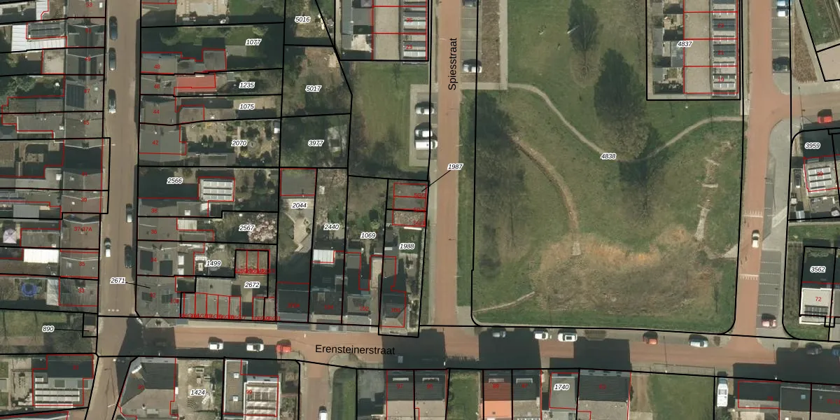 Spiesstraat 5-G-2 is gelegen op kadastraal perceel KRD00G1987. Deze kadastrale aanduiding is uniek en wordt gebruikt door het Kadaster om eigendomsrechten en andere zakelijke rechten vast te leggen. Het perceel maakt onderdeel uit van de kadastrale gemeente Kerkrade.