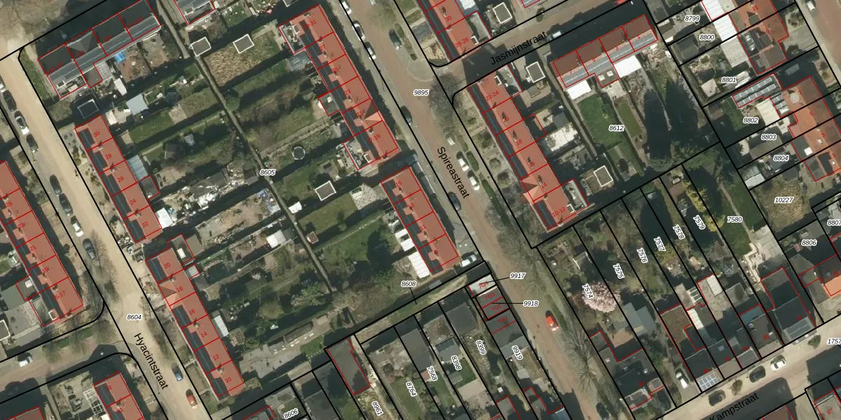 Het perceel waarop Spireastraat 13 staat heeft een oppervlakte van 7376 m². Dit is een zeer groot perceel. De perceeloppervlakte wordt geregistreerd door het Kadaster. Gedetailleerde informatie over de maten van dit perceel kunt u vinden in het rapport Kadastrale kaart met maatvoering van Spireastraat 13.