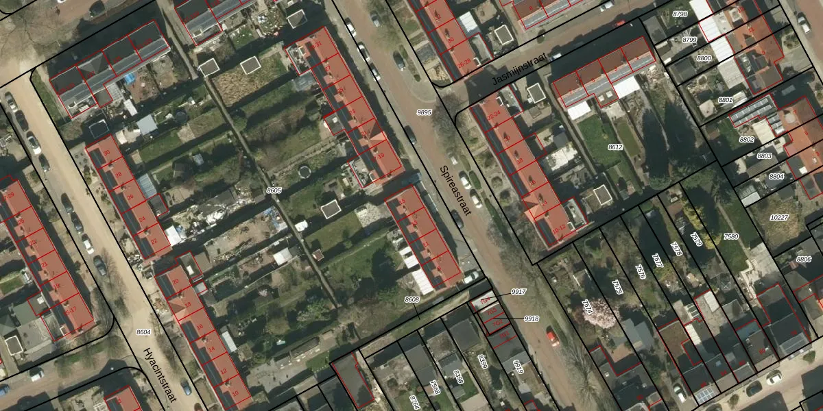 Het perceel waarop Spireastraat 15 staat heeft een oppervlakte van 7376 m². Dit is een zeer groot perceel. De perceeloppervlakte wordt geregistreerd door het Kadaster. Gedetailleerde informatie over de maten van dit perceel kunt u vinden in het rapport Kadastrale kaart met maatvoering van Spireastraat 15.
