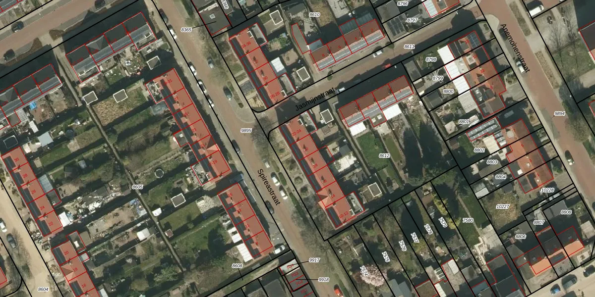 Het perceel waarop Spireastraat 20 staat heeft een oppervlakte van 2078 m². Dit is een zeer groot perceel. De perceeloppervlakte wordt geregistreerd door het Kadaster. Gedetailleerde informatie over de maten van dit perceel kunt u vinden in het rapport Kadastrale kaart met maatvoering van Spireastraat 20.