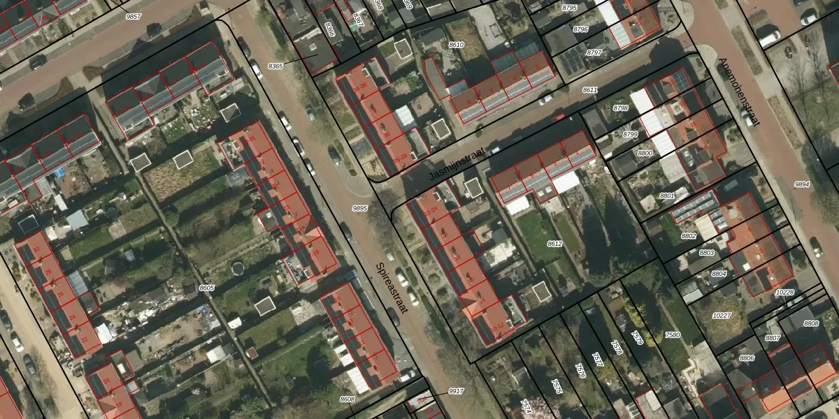 Het perceel waarop Spireastraat 22 staat heeft een oppervlakte van 2078 m². Dit is een zeer groot perceel. De perceeloppervlakte wordt geregistreerd door het Kadaster. Gedetailleerde informatie over de maten van dit perceel kunt u vinden in het rapport Kadastrale kaart met maatvoering van Spireastraat 22.