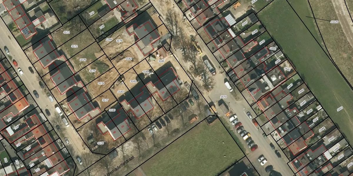 St.Bernadettestraat 2-A is gelegen op kadastraal perceel KRD00K3185. Deze kadastrale aanduiding is uniek en wordt gebruikt door het Kadaster om eigendomsrechten en andere zakelijke rechten vast te leggen. Het perceel maakt onderdeel uit van de kadastrale gemeente Kerkrade.