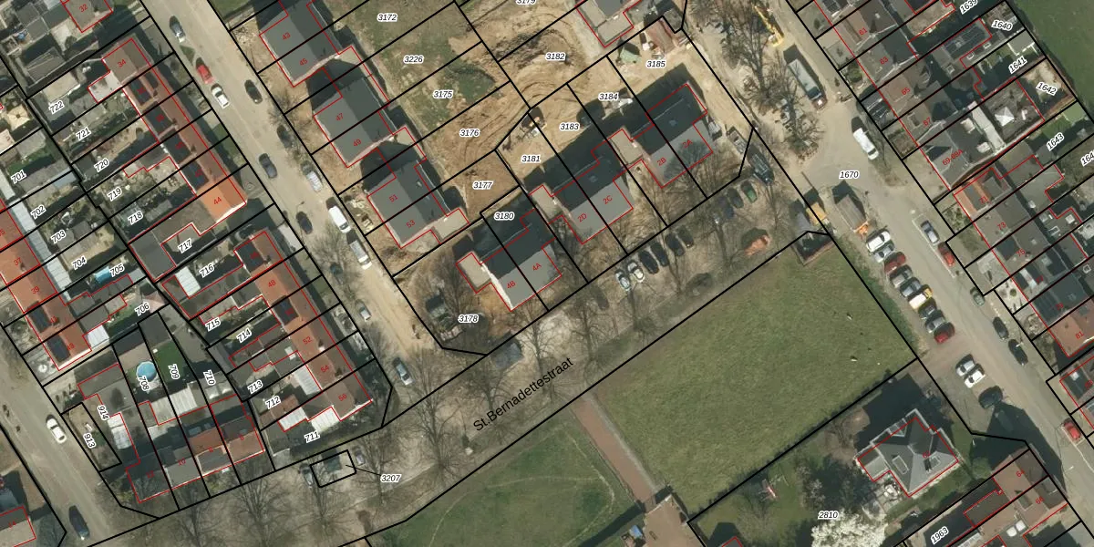 Het perceel waarop St.Bernadettestraat 4-A staat heeft een oppervlakte van 195 m². Dit is een middelgroot perceel. De perceeloppervlakte wordt geregistreerd door het Kadaster. Gedetailleerde informatie over de maten van dit perceel kunt u vinden in het rapport Kadastrale kaart met maatvoering van St.Bernadettestraat 4-A.