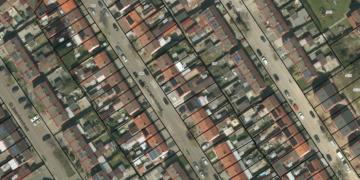 Het perceel waarop St.Corneliusstraat 23 staat heeft een oppervlakte van 228 m². Dit is een middelgroot perceel. De perceeloppervlakte wordt geregistreerd door het Kadaster. Gedetailleerde informatie over de maten van dit perceel kunt u vinden in het rapport Kadastrale kaart met maatvoering van St.Corneliusstraat 23.