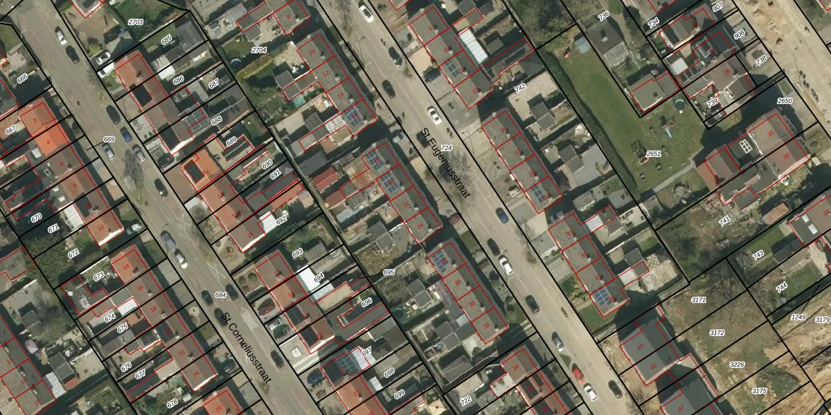 Het perceel waarop St.Eugeniusstraat 22 staat heeft een oppervlakte van 3976 m². Dit is een zeer groot perceel. De perceeloppervlakte wordt geregistreerd door het Kadaster. Gedetailleerde informatie over de maten van dit perceel kunt u vinden in het rapport Kadastrale kaart met maatvoering van St.Eugeniusstraat 22.