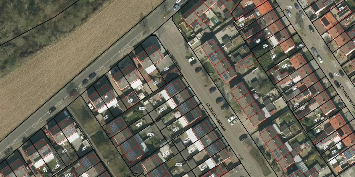 St.Joannesstraat 2 is gelegen op kadastraal perceel KRD00K2546. Deze kadastrale aanduiding is uniek en wordt gebruikt door het Kadaster om eigendomsrechten en andere zakelijke rechten vast te leggen. Het perceel maakt onderdeel uit van de kadastrale gemeente Kerkrade.
