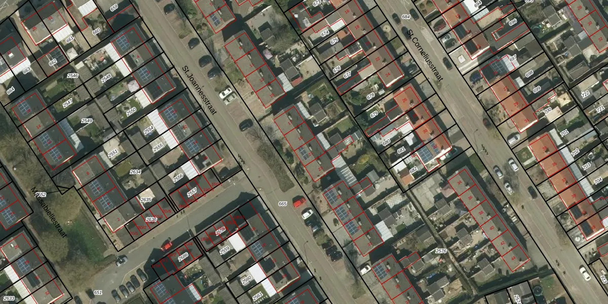 St.Joannesstraat 21 is gelegen op kadastraal perceel KRD00K2576. Deze kadastrale aanduiding is uniek en wordt gebruikt door het Kadaster om eigendomsrechten en andere zakelijke rechten vast te leggen. Het perceel maakt onderdeel uit van de kadastrale gemeente Kerkrade.