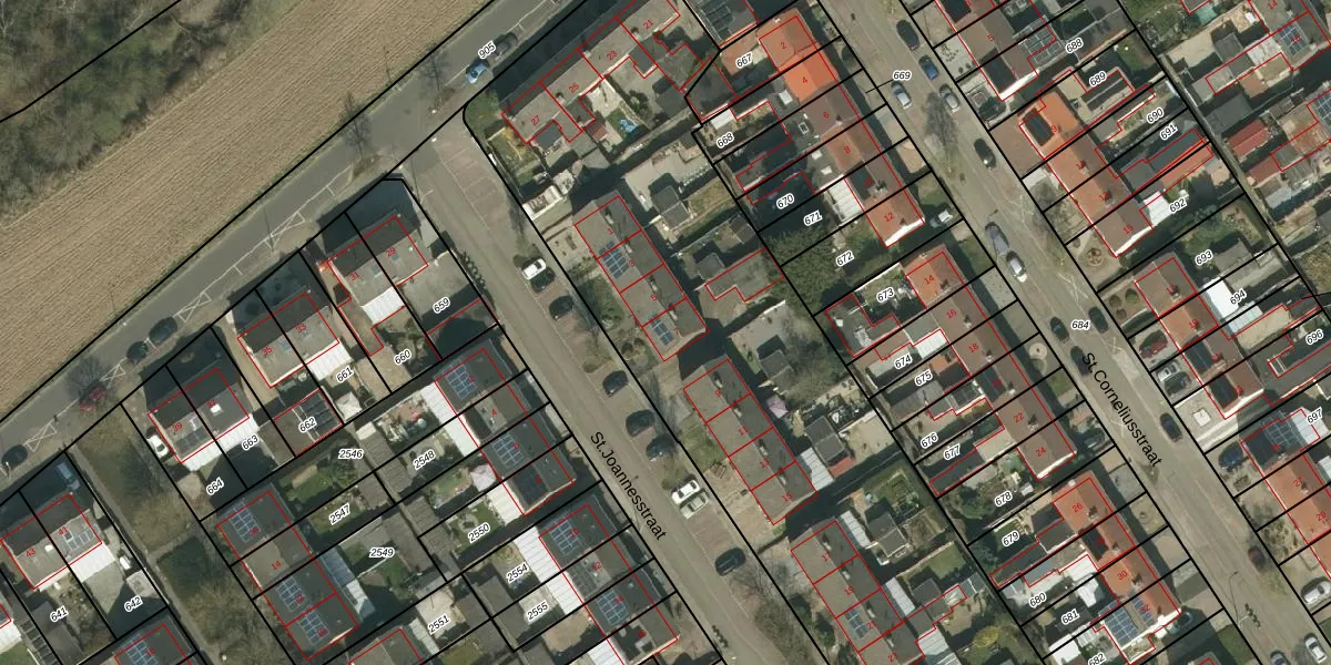 St.Joannesstraat 7 is gelegen op kadastraal perceel KRD00K2576. Deze kadastrale aanduiding is uniek en wordt gebruikt door het Kadaster om eigendomsrechten en andere zakelijke rechten vast te leggen. Het perceel maakt onderdeel uit van de kadastrale gemeente Kerkrade.