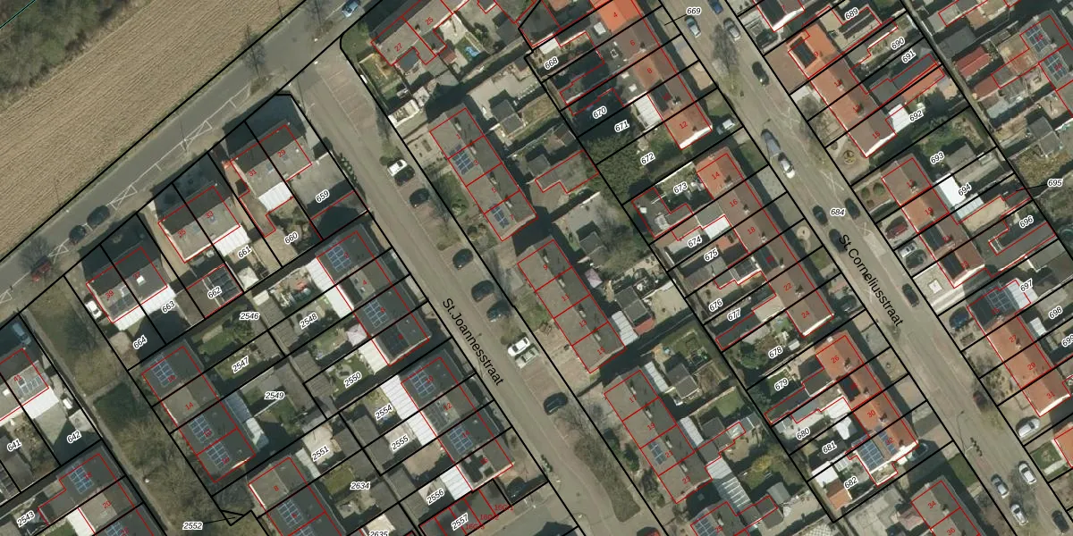 St.Joannesstraat 9 is gelegen op kadastraal perceel KRD00K2576. Deze kadastrale aanduiding is uniek en wordt gebruikt door het Kadaster om eigendomsrechten en andere zakelijke rechten vast te leggen. Het perceel maakt onderdeel uit van de kadastrale gemeente Kerkrade.