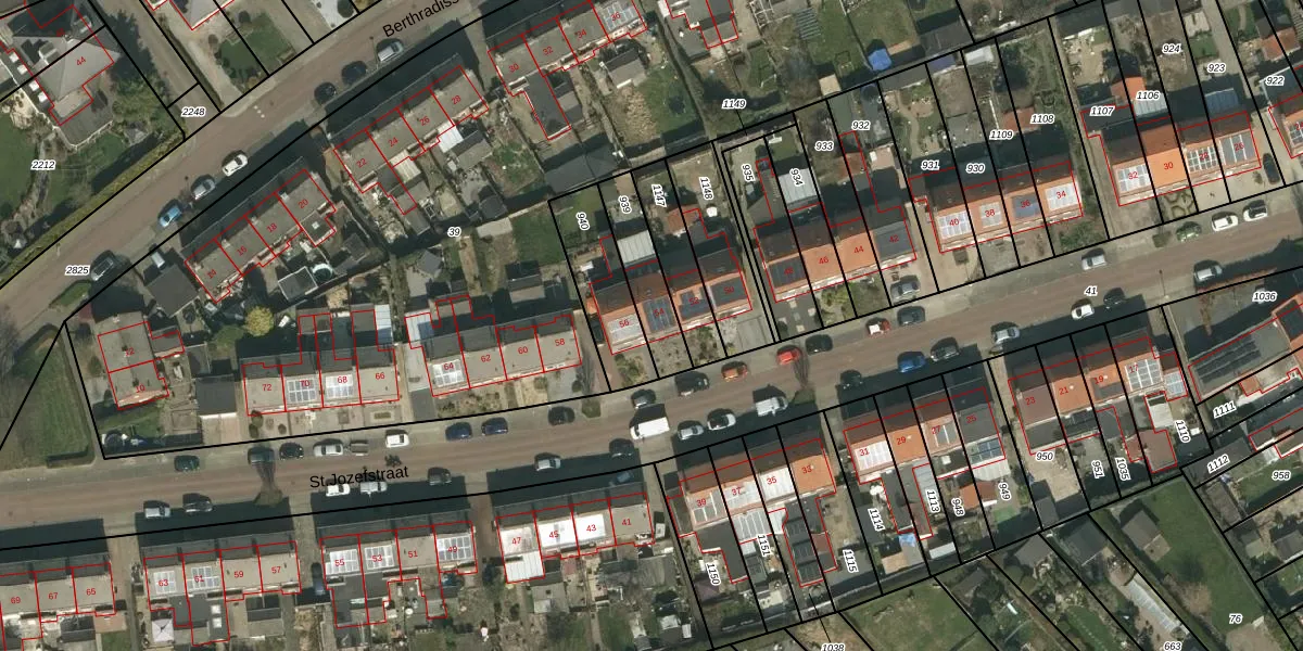 Het perceel waarop St.Jozefstraat 54 staat heeft een oppervlakte van 175 m². Dit is een middelgroot perceel. De perceeloppervlakte wordt geregistreerd door het Kadaster. Gedetailleerde informatie over de maten van dit perceel kunt u vinden in het rapport Kadastrale kaart met maatvoering van St.Jozefstraat 54.