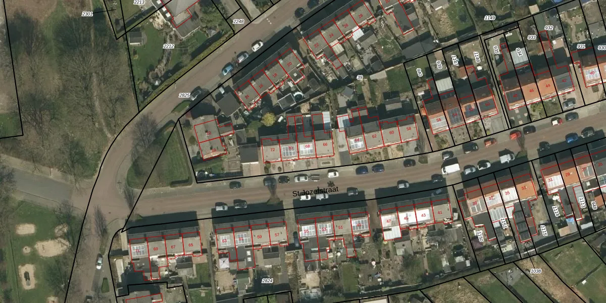 Het perceel waarop St.Jozefstraat 68 staat heeft een oppervlakte van 5500 m². Dit is een zeer groot perceel. De perceeloppervlakte wordt geregistreerd door het Kadaster. Gedetailleerde informatie over de maten van dit perceel kunt u vinden in het rapport Kadastrale kaart met maatvoering van St.Jozefstraat 68.