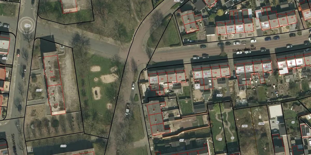 Het perceel waarop St.Jozefstraat 71 staat heeft een oppervlakte van 3462 m². Dit is een zeer groot perceel. De perceeloppervlakte wordt geregistreerd door het Kadaster. Gedetailleerde informatie over de maten van dit perceel kunt u vinden in het rapport Kadastrale kaart met maatvoering van St.Jozefstraat 71.