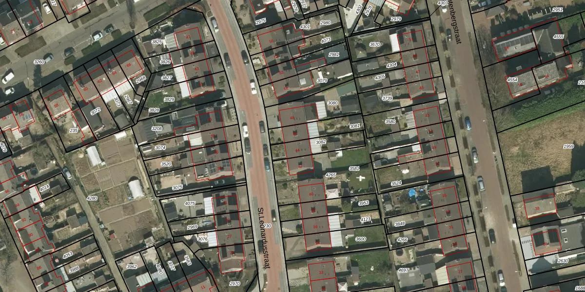 St.Leonardusstraat 44 is gelegen op kadastraal perceel KRD00G3082. Deze kadastrale aanduiding is uniek en wordt gebruikt door het Kadaster om eigendomsrechten en andere zakelijke rechten vast te leggen. Het perceel maakt onderdeel uit van de kadastrale gemeente Kerkrade.