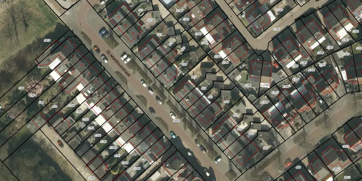 Het perceel waarop St.Martinusstraat 16 staat heeft een oppervlakte van 278 m². Dit is een middelgroot perceel. De perceeloppervlakte wordt geregistreerd door het Kadaster. Gedetailleerde informatie over de maten van dit perceel kunt u vinden in het rapport Kadastrale kaart met maatvoering van St.Martinusstraat 16.