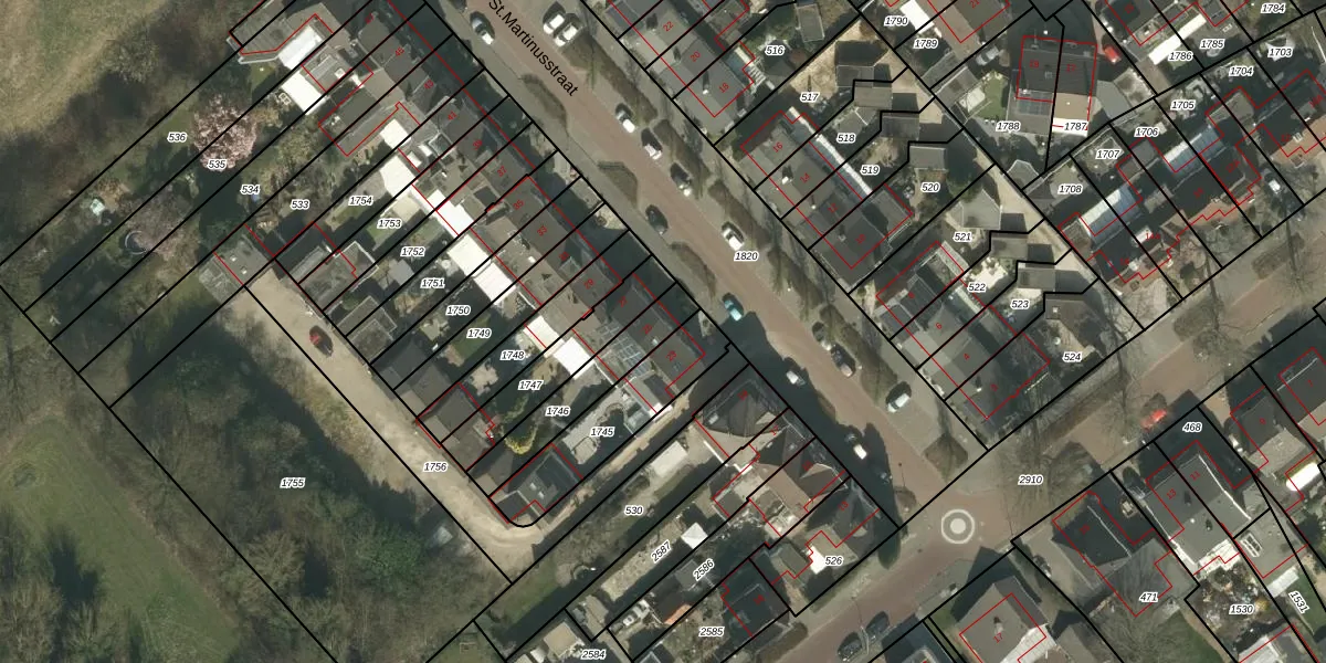 Het perceel waarop St.Martinusstraat 25 staat heeft een oppervlakte van 233 m². Dit is een middelgroot perceel. De perceeloppervlakte wordt geregistreerd door het Kadaster. Gedetailleerde informatie over de maten van dit perceel kunt u vinden in het rapport Kadastrale kaart met maatvoering van St.Martinusstraat 25.
