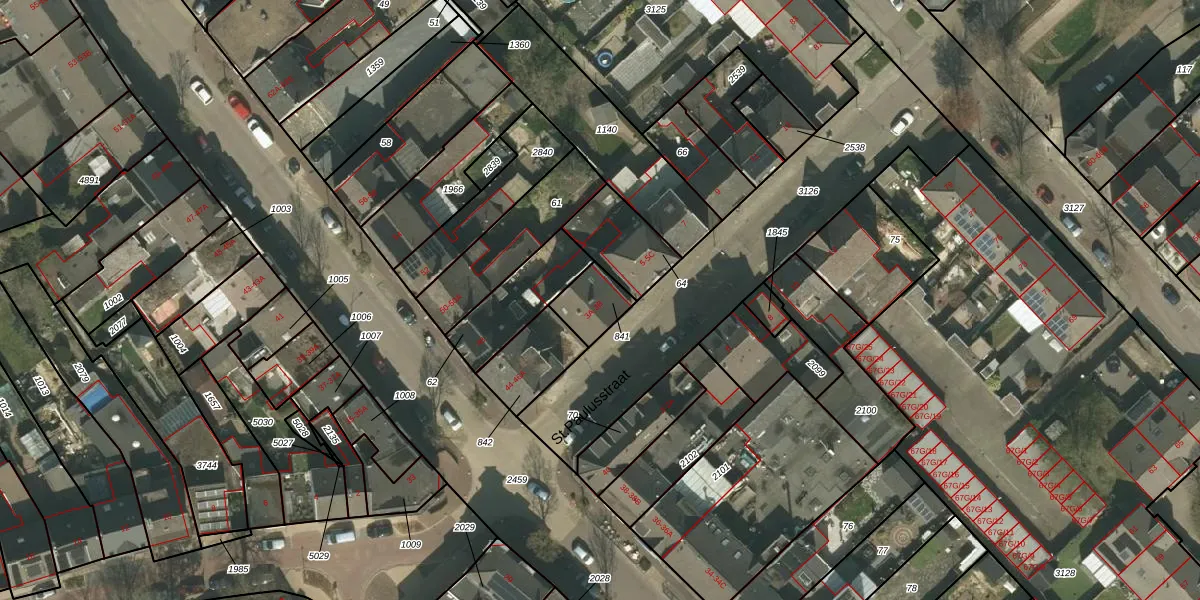 St.Paulusstraat 3-B is gelegen op kadastraal perceel KRD00G841. Deze kadastrale aanduiding is uniek en wordt gebruikt door het Kadaster om eigendomsrechten en andere zakelijke rechten vast te leggen. Het perceel maakt onderdeel uit van de kadastrale gemeente Kerkrade.