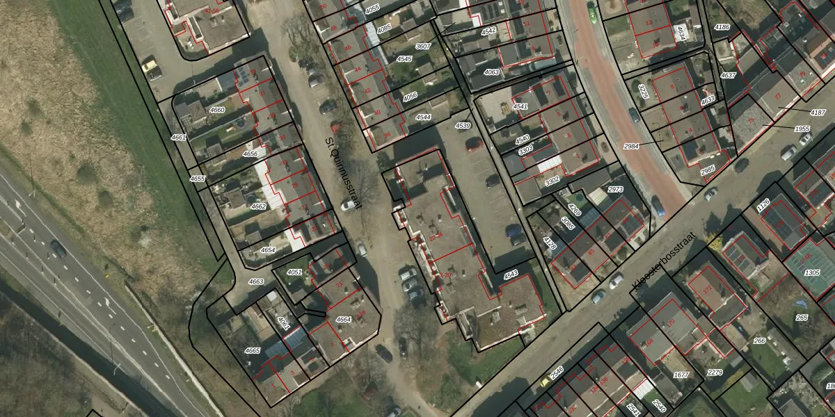 St.Quirinusstraat 28 is gelegen op kadastraal perceel KRD00G4543. Deze kadastrale aanduiding is uniek en wordt gebruikt door het Kadaster om eigendomsrechten en andere zakelijke rechten vast te leggen. Het perceel maakt onderdeel uit van de kadastrale gemeente Kerkrade.