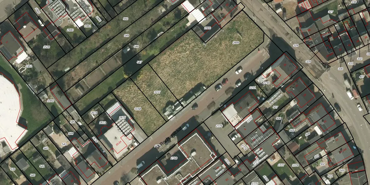 Het perceel waarop St.Rochusstraat 12 staat heeft een oppervlakte van 1490 m². Dit is een zeer groot perceel. De perceeloppervlakte wordt geregistreerd door het Kadaster. Gedetailleerde informatie over de maten van dit perceel kunt u vinden in het rapport Kadastrale kaart met maatvoering van St.Rochusstraat 12.