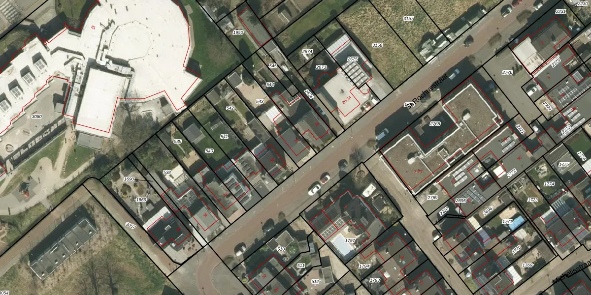 St.Rochusstraat 28 is gelegen op kadastraal perceel KRD00K543. Deze kadastrale aanduiding is uniek en wordt gebruikt door het Kadaster om eigendomsrechten en andere zakelijke rechten vast te leggen. Het perceel maakt onderdeel uit van de kadastrale gemeente Kerkrade.