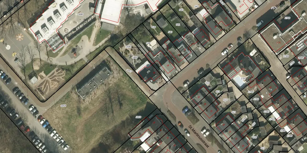 Het perceel waarop St.Rochusstraat 38 staat heeft een oppervlakte van 445 m². Dit is een groot perceel. De perceeloppervlakte wordt geregistreerd door het Kadaster. Gedetailleerde informatie over de maten van dit perceel kunt u vinden in het rapport Kadastrale kaart met maatvoering van St.Rochusstraat 38.