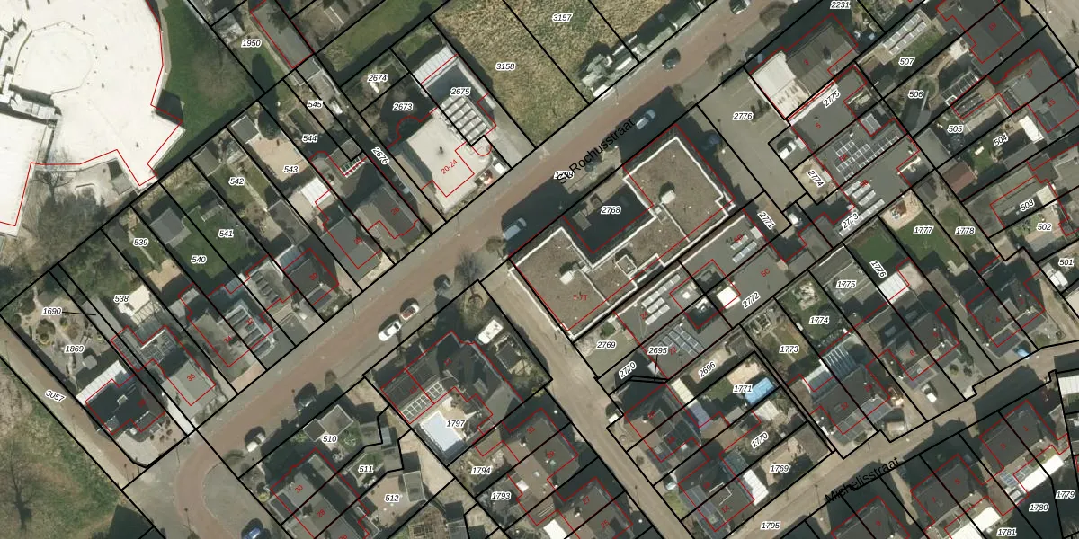 Het perceel waarop St.Rochusstraat 7-M staat heeft een oppervlakte van 900 m². Dit is een groot perceel. De perceeloppervlakte wordt geregistreerd door het Kadaster. Gedetailleerde informatie over de maten van dit perceel kunt u vinden in het rapport Kadastrale kaart met maatvoering van St.Rochusstraat 7-M.