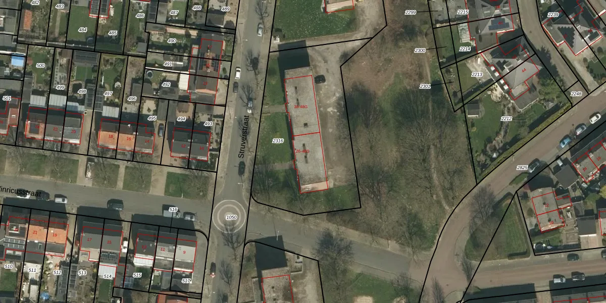 Struverstraat 26 is gelegen op kadastraal perceel KRD00H2316. Deze kadastrale aanduiding is uniek en wordt gebruikt door het Kadaster om eigendomsrechten en andere zakelijke rechten vast te leggen. Het perceel maakt onderdeel uit van de kadastrale gemeente Kerkrade.