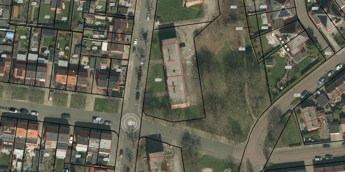Struverstraat 34 is gelegen op kadastraal perceel KRD00H2316. Deze kadastrale aanduiding is uniek en wordt gebruikt door het Kadaster om eigendomsrechten en andere zakelijke rechten vast te leggen. Het perceel maakt onderdeel uit van de kadastrale gemeente Kerkrade.