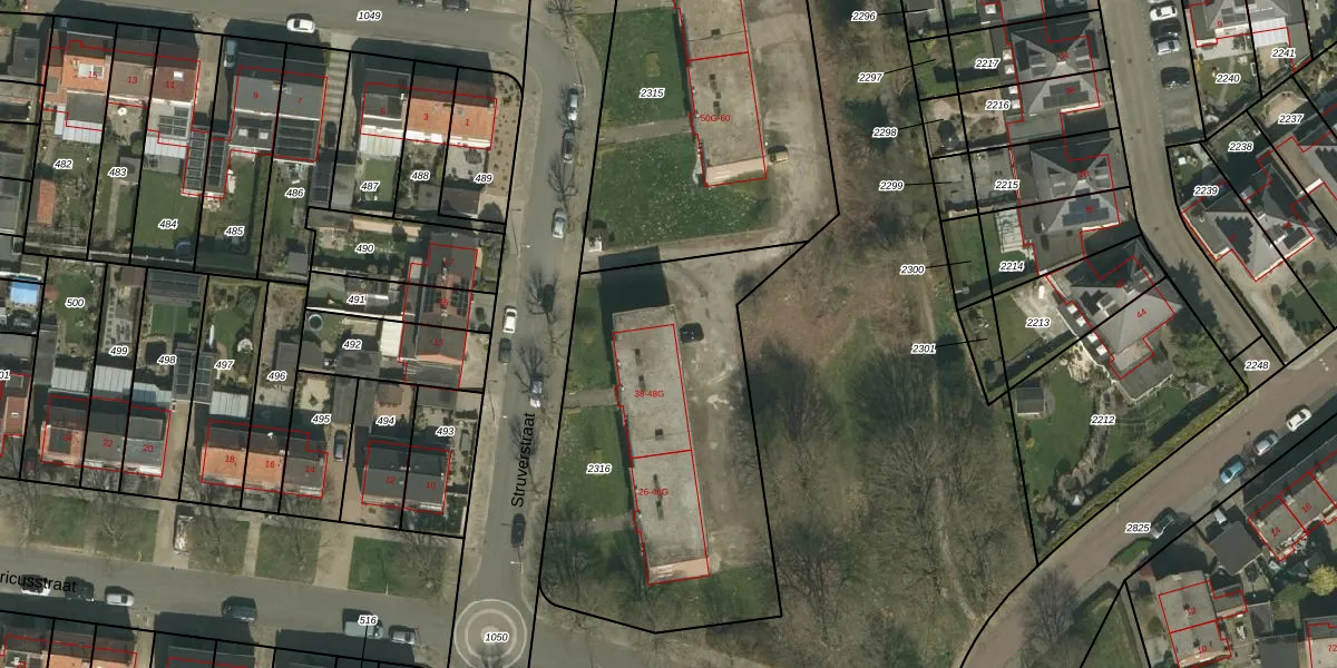 Struverstraat 48-G-1 is gelegen op kadastraal perceel KRD00H2316. Deze kadastrale aanduiding is uniek en wordt gebruikt door het Kadaster om eigendomsrechten en andere zakelijke rechten vast te leggen. Het perceel maakt onderdeel uit van de kadastrale gemeente Kerkrade.