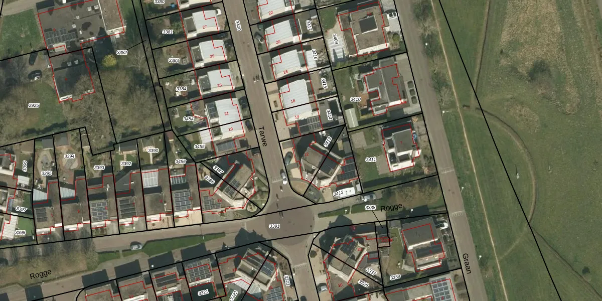 Het perceel waarop Tarwe 12 staat heeft een oppervlakte van 249 m². Dit is een middelgroot perceel. De perceeloppervlakte wordt geregistreerd door het Kadaster. Gedetailleerde informatie over de maten van dit perceel kunt u vinden in het rapport Kadastrale kaart met maatvoering van Tarwe 12.