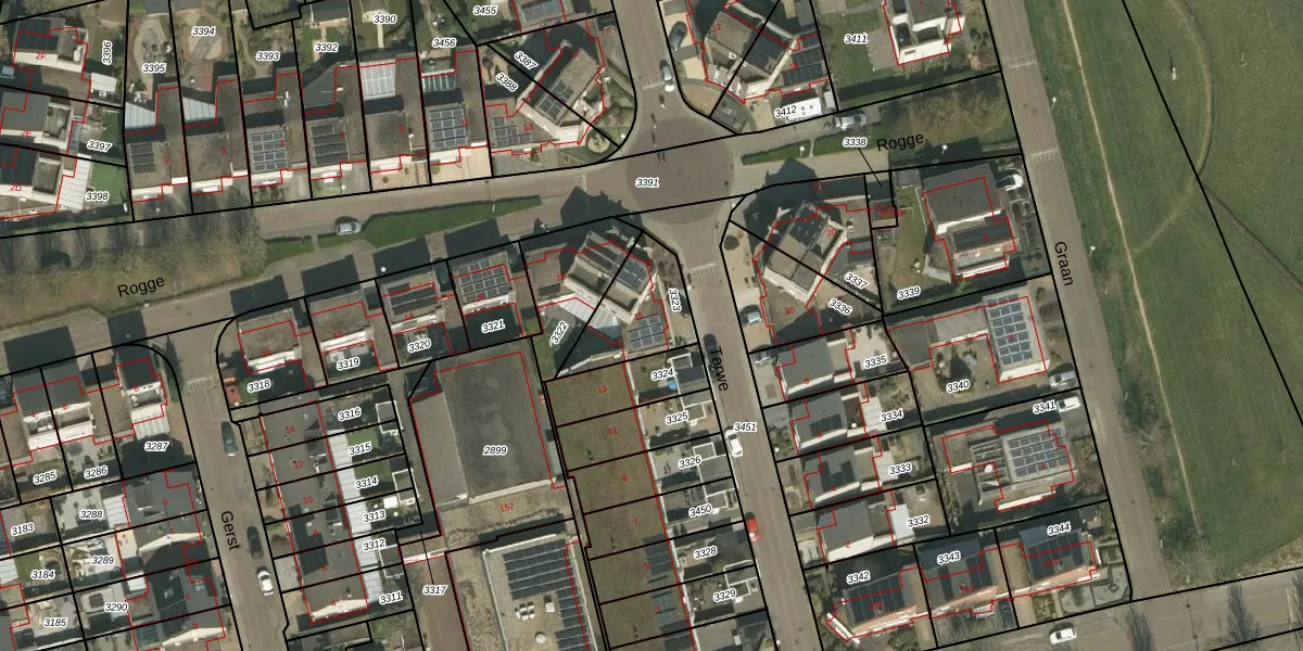 Het perceel waarop Tarwe 15 staat heeft een oppervlakte van 245 m². Dit is een middelgroot perceel. De perceeloppervlakte wordt geregistreerd door het Kadaster. Gedetailleerde informatie over de maten van dit perceel kunt u vinden in het rapport Kadastrale kaart met maatvoering van Tarwe 15.