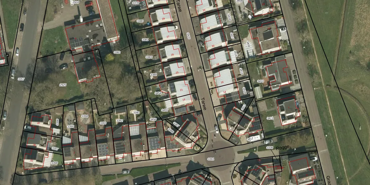 Het perceel waarop Tarwe 21 staat heeft een oppervlakte van 264 m². Dit is een middelgroot perceel. De perceeloppervlakte wordt geregistreerd door het Kadaster. Gedetailleerde informatie over de maten van dit perceel kunt u vinden in het rapport Kadastrale kaart met maatvoering van Tarwe 21.