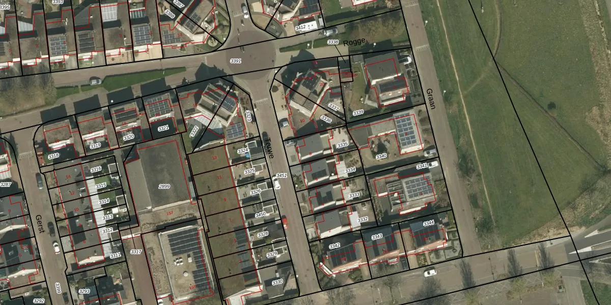 Het perceel waarop Tarwe 8 staat heeft een oppervlakte van 190 m². Dit is een middelgroot perceel. De perceeloppervlakte wordt geregistreerd door het Kadaster. Gedetailleerde informatie over de maten van dit perceel kunt u vinden in het rapport Kadastrale kaart met maatvoering van Tarwe 8.