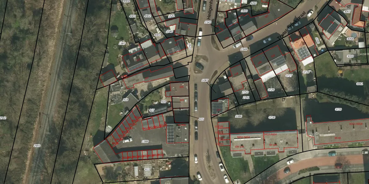 Teutelebroekstraat 105 is gelegen op kadastraal perceel KRD00G917. Deze kadastrale aanduiding is uniek en wordt gebruikt door het Kadaster om eigendomsrechten en andere zakelijke rechten vast te leggen. Het perceel maakt onderdeel uit van de kadastrale gemeente Kerkrade.