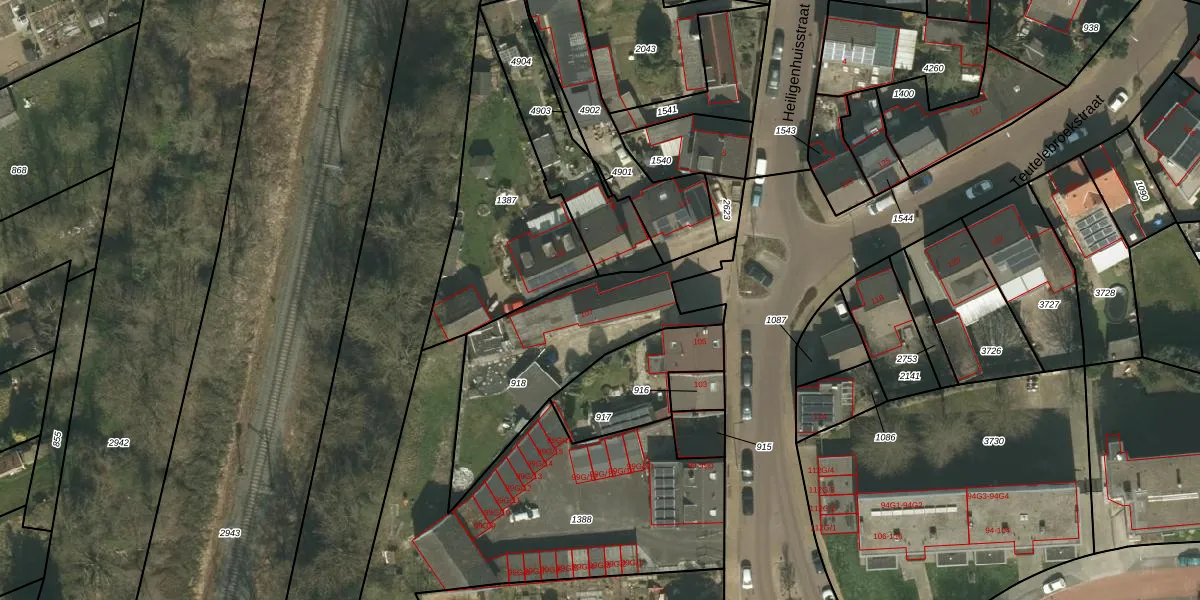 Teutelebroekstraat 107 is gelegen op kadastraal perceel KRD00G918. Deze kadastrale aanduiding is uniek en wordt gebruikt door het Kadaster om eigendomsrechten en andere zakelijke rechten vast te leggen. Het perceel maakt onderdeel uit van de kadastrale gemeente Kerkrade.