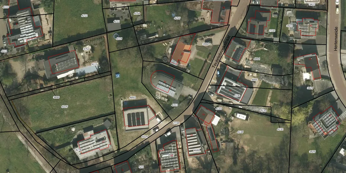 Teutelebroekstraat 21 is gelegen op kadastraal perceel KRD00G4313. Deze kadastrale aanduiding is uniek en wordt gebruikt door het Kadaster om eigendomsrechten en andere zakelijke rechten vast te leggen. Het perceel maakt onderdeel uit van de kadastrale gemeente Kerkrade.