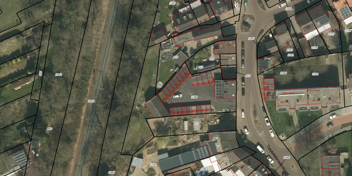 Teutelebroekstraat 99-G-12 is gelegen op kadastraal perceel KRD00G1388. Deze kadastrale aanduiding is uniek en wordt gebruikt door het Kadaster om eigendomsrechten en andere zakelijke rechten vast te leggen. Het perceel maakt onderdeel uit van de kadastrale gemeente Kerkrade.
