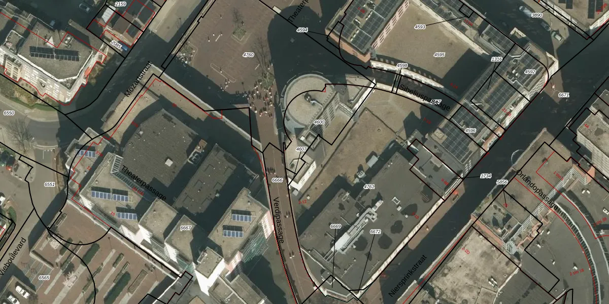 Theaterplein 16 is gelegen op kadastraal perceel KRD00G4600. Deze kadastrale aanduiding is uniek en wordt gebruikt door het Kadaster om eigendomsrechten en andere zakelijke rechten vast te leggen. Het perceel maakt onderdeel uit van de kadastrale gemeente Kerkrade.