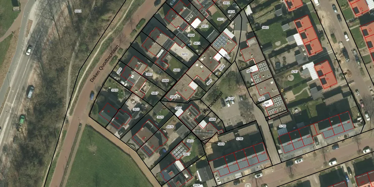 Thorbeckehof 3 is gelegen op kadastraal perceel KRD00E5806. Deze kadastrale aanduiding is uniek en wordt gebruikt door het Kadaster om eigendomsrechten en andere zakelijke rechten vast te leggen. Het perceel maakt onderdeel uit van de kadastrale gemeente Kerkrade.