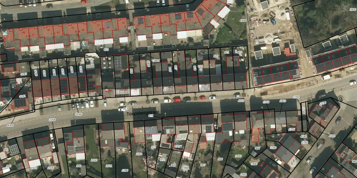 Het perceel waarop Toupsbergstraat 44 staat heeft een oppervlakte van 165 m². Dit is een middelgroot perceel. De perceeloppervlakte wordt geregistreerd door het Kadaster. Gedetailleerde informatie over de maten van dit perceel kunt u vinden in het rapport Kadastrale kaart met maatvoering van Toupsbergstraat 44.
