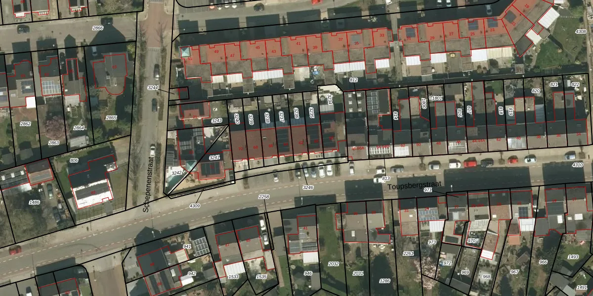 Toupsbergstraat 62 is gelegen op kadastraal perceel KRD00G3236. Deze kadastrale aanduiding is uniek en wordt gebruikt door het Kadaster om eigendomsrechten en andere zakelijke rechten vast te leggen. Het perceel maakt onderdeel uit van de kadastrale gemeente Kerkrade.