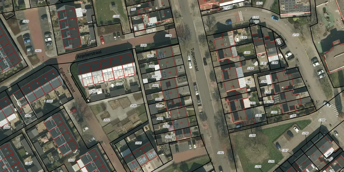 Tulpenstraat 33 is gelegen op kadastraal perceel KRD00H2661. Deze kadastrale aanduiding is uniek en wordt gebruikt door het Kadaster om eigendomsrechten en andere zakelijke rechten vast te leggen. Het perceel maakt onderdeel uit van de kadastrale gemeente Kerkrade.