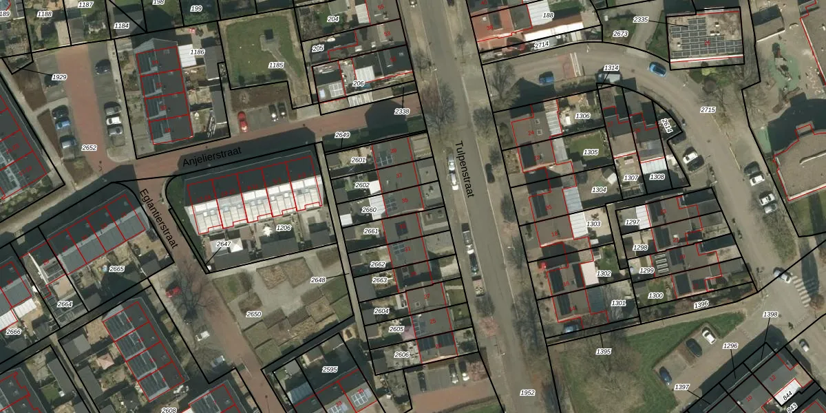 Het perceel waarop Tulpenstraat 35 staat heeft een oppervlakte van 156 m². Dit is een middelgroot perceel. De perceeloppervlakte wordt geregistreerd door het Kadaster. Gedetailleerde informatie over de maten van dit perceel kunt u vinden in het rapport Kadastrale kaart met maatvoering van Tulpenstraat 35.