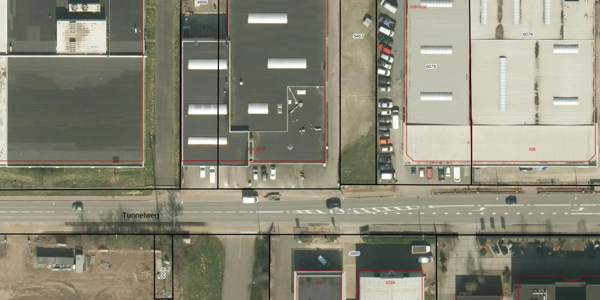 Het perceel waarop Tunnelweg 101 staat heeft een oppervlakte van 3455 m². Dit is een zeer groot perceel. De perceeloppervlakte wordt geregistreerd door het Kadaster. Gedetailleerde informatie over de maten van dit perceel kunt u vinden in het rapport Kadastrale kaart met maatvoering van Tunnelweg 101.
