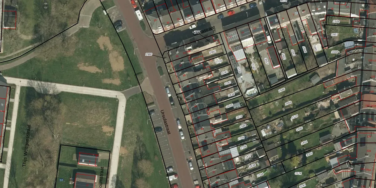 Het perceel waarop Ursulastraat 43 staat heeft een oppervlakte van 190 m². Dit is een middelgroot perceel. De perceeloppervlakte wordt geregistreerd door het Kadaster. Gedetailleerde informatie over de maten van dit perceel kunt u vinden in het rapport Kadastrale kaart met maatvoering van Ursulastraat 43.