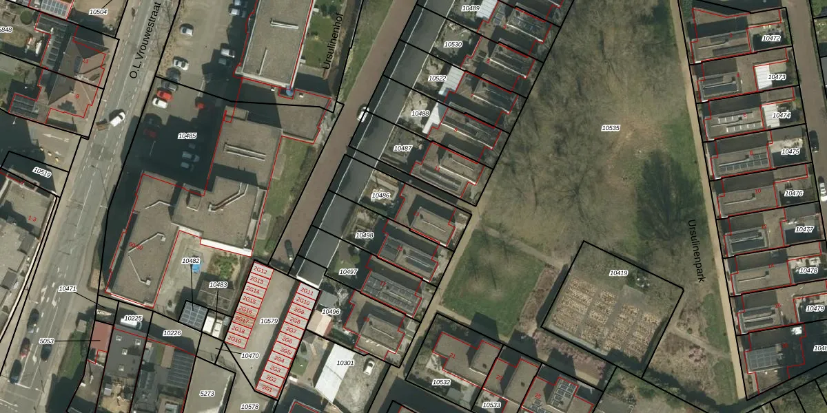 Het perceel waarop Ursulinenpark 13 staat heeft een oppervlakte van 327 m². Dit is een groot perceel. De perceeloppervlakte wordt geregistreerd door het Kadaster. Gedetailleerde informatie over de maten van dit perceel kunt u vinden in het rapport Kadastrale kaart met maatvoering van Ursulinenpark 13.