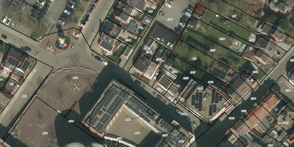 Het perceel waarop Van Beethovenstraat 20 staat heeft een oppervlakte van 254 m². Dit is een middelgroot perceel. De perceeloppervlakte wordt geregistreerd door het Kadaster. Gedetailleerde informatie over de maten van dit perceel kunt u vinden in het rapport Kadastrale kaart met maatvoering van Van Beethovenstraat 20.