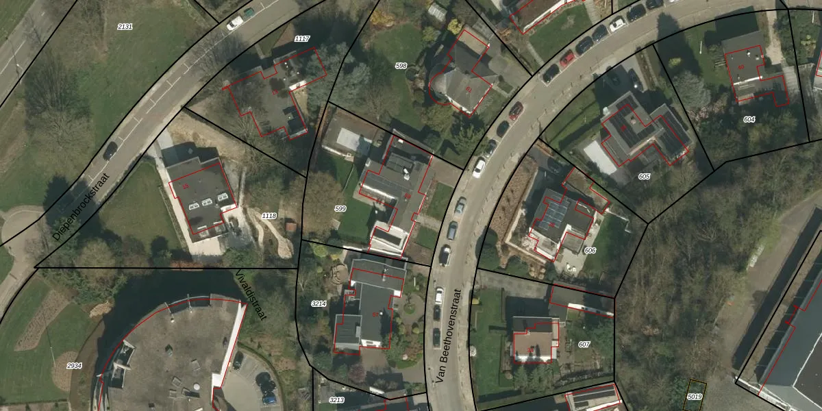 Van Beethovenstraat 59 is gelegen op kadastraal perceel KRD00G599. Deze kadastrale aanduiding is uniek en wordt gebruikt door het Kadaster om eigendomsrechten en andere zakelijke rechten vast te leggen. Het perceel maakt onderdeel uit van de kadastrale gemeente Kerkrade.