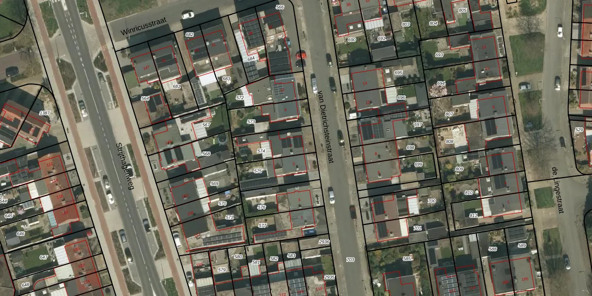 Het perceel waarop van Dietrichsteinstraat 7 staat heeft een oppervlakte van 255 m². Dit is een middelgroot perceel. De perceeloppervlakte wordt geregistreerd door het Kadaster. Gedetailleerde informatie over de maten van dit perceel kunt u vinden in het rapport Kadastrale kaart met maatvoering van van Dietrichsteinstraat 7.